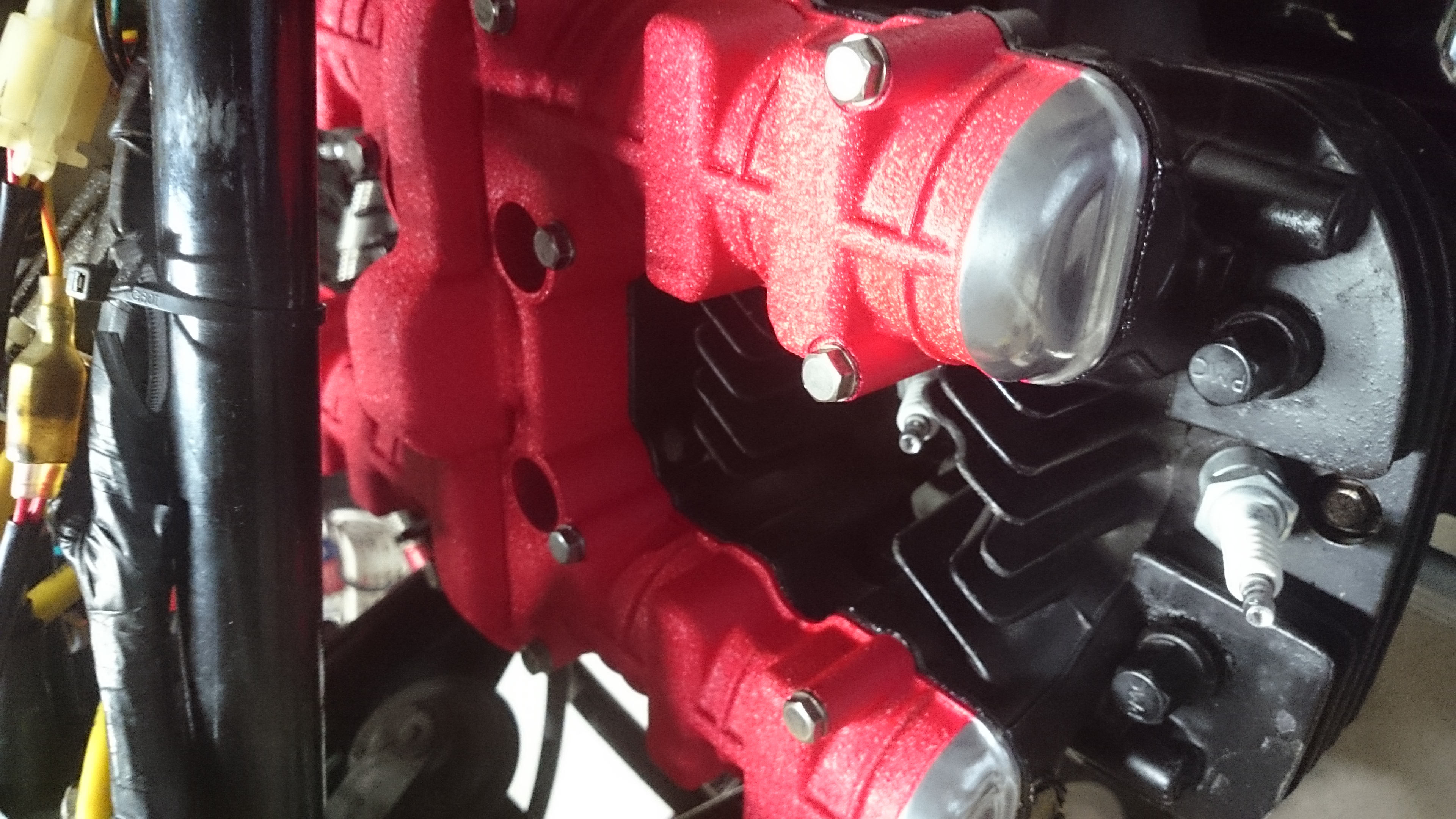 タペットカバーに結晶塗装の施工です。 装着後の画像をお客様より提供いただきました。 仕上がり、施工後の効果の満足いただけました。