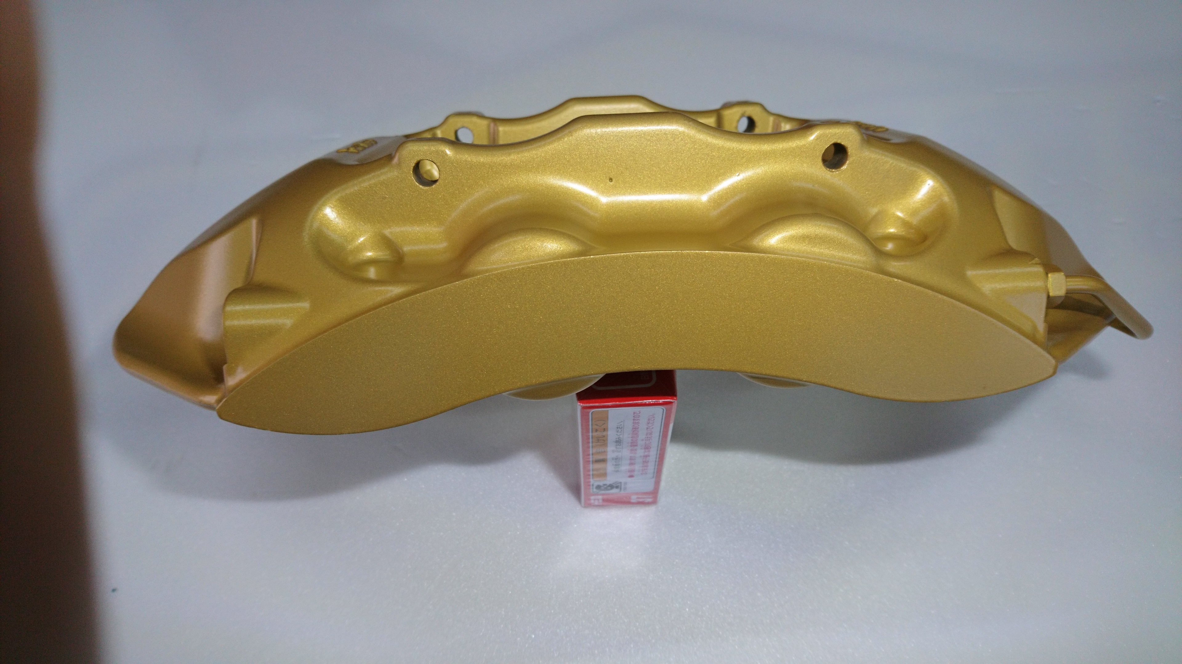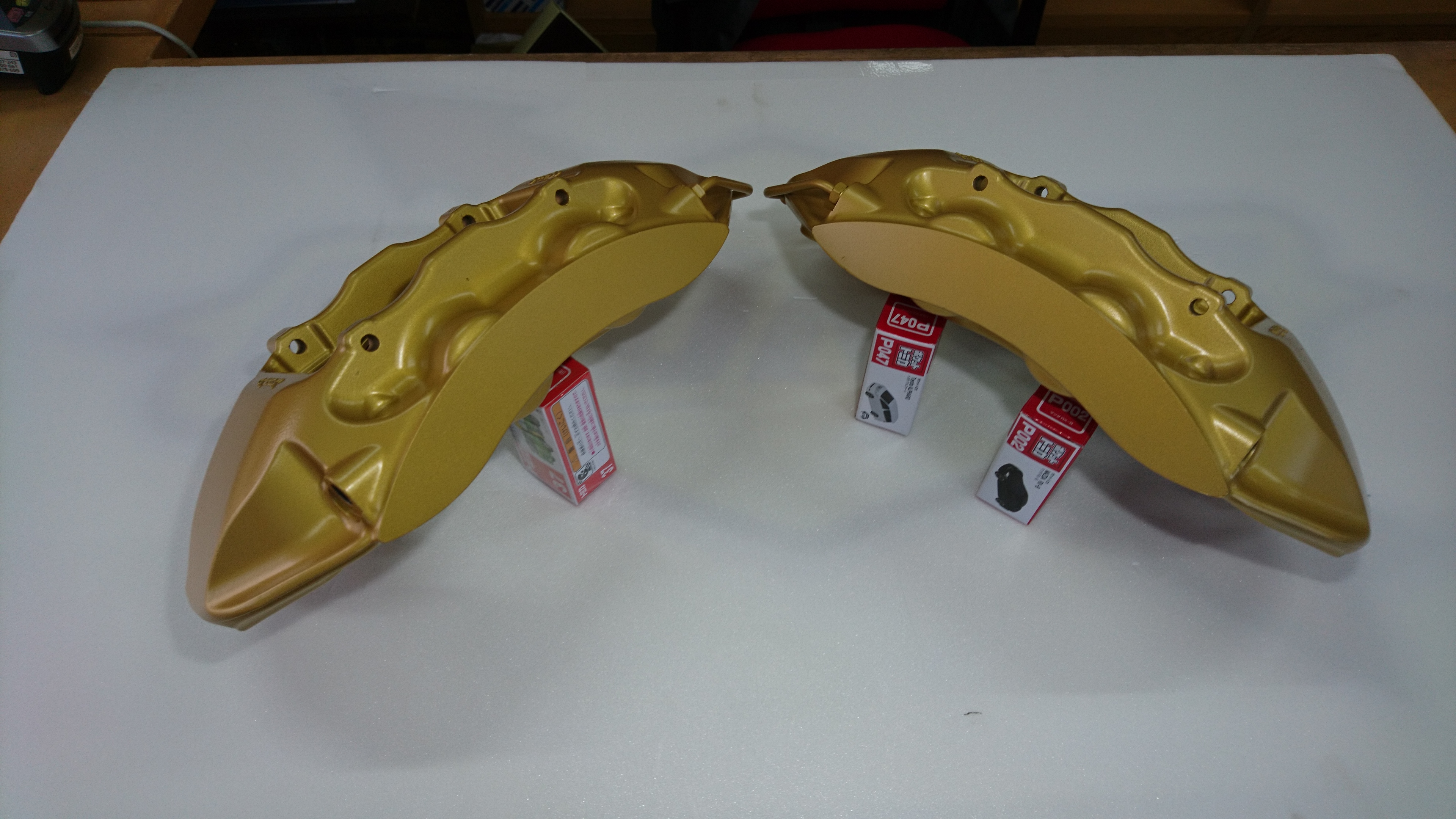 R35 GT-R リアキャリパーにセラコートC122ゴールドでの施工です。