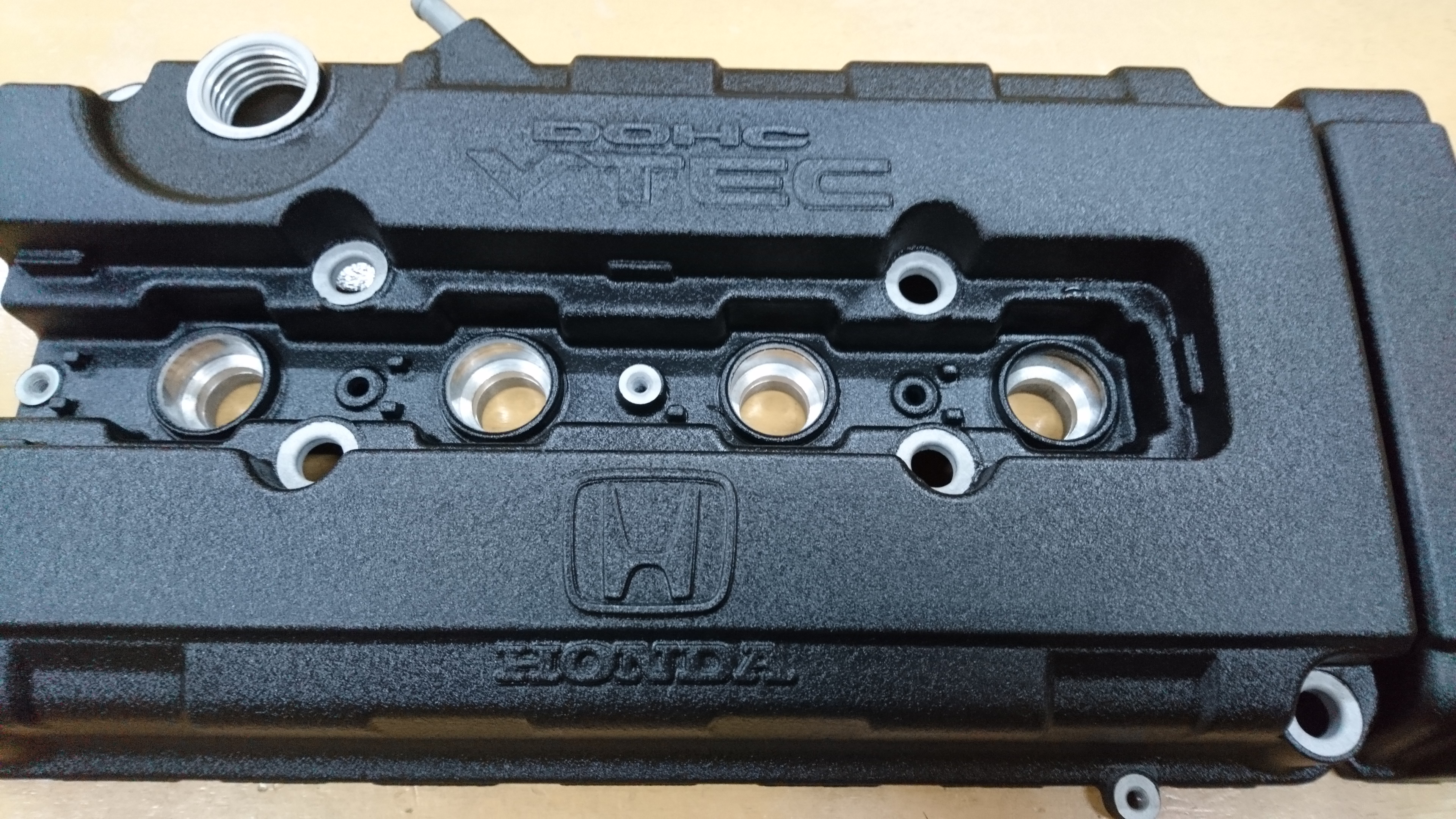 ホンダ B16Aタペットカバーの結晶塗装の施工です。 純正と同じブラックでの塗装で仕上げました。 定番ですがやはりカッコいいですね~。