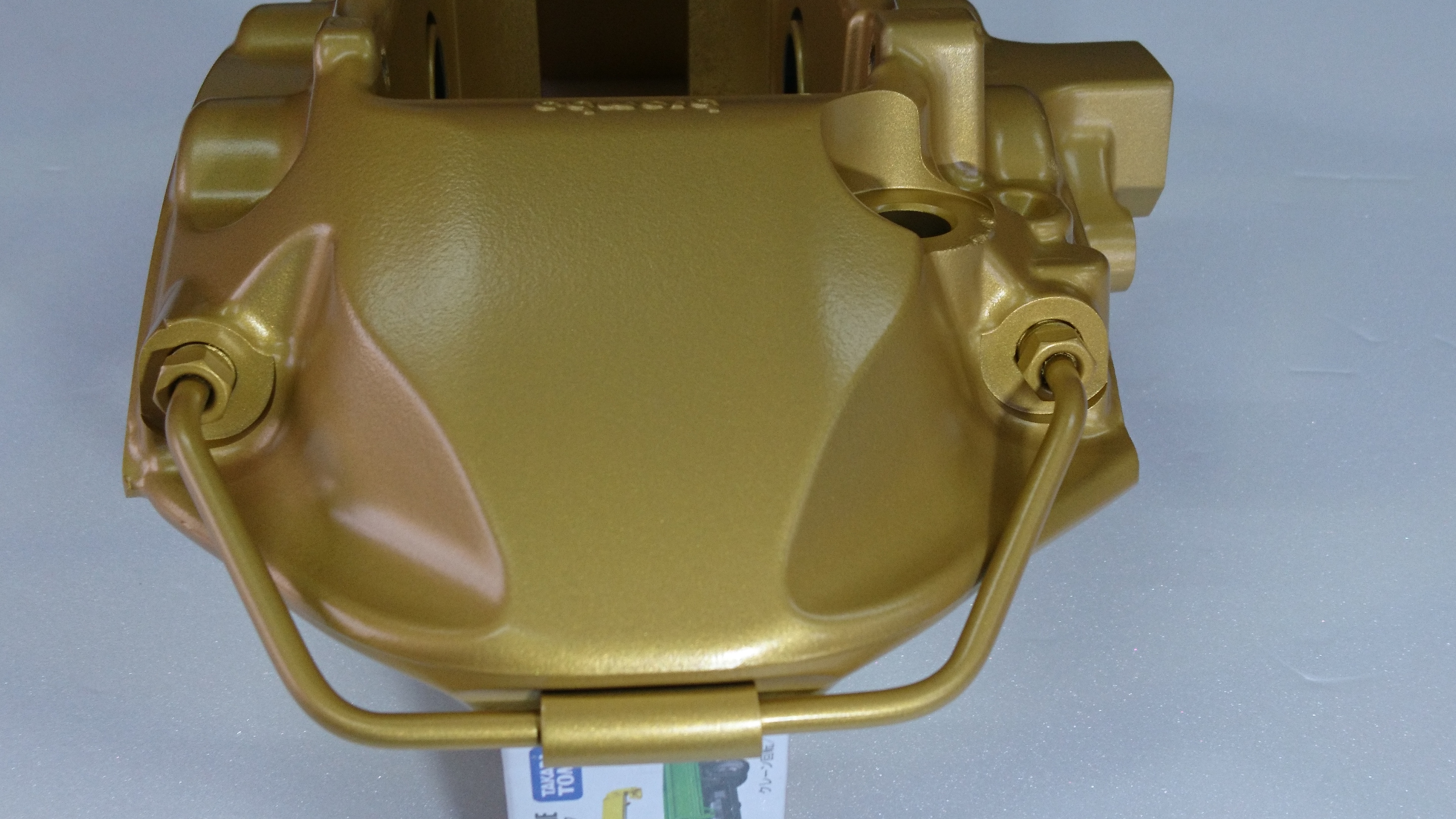 R35 GT-R リアキャリパーにセラコートC122ゴールドでの施工です。