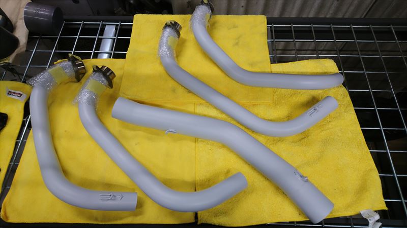スズキ バンディット1200のヨシムラ チタンマフラー(エキパイ部)にセラコート(C-242ヒデンホワイト)の施工です。