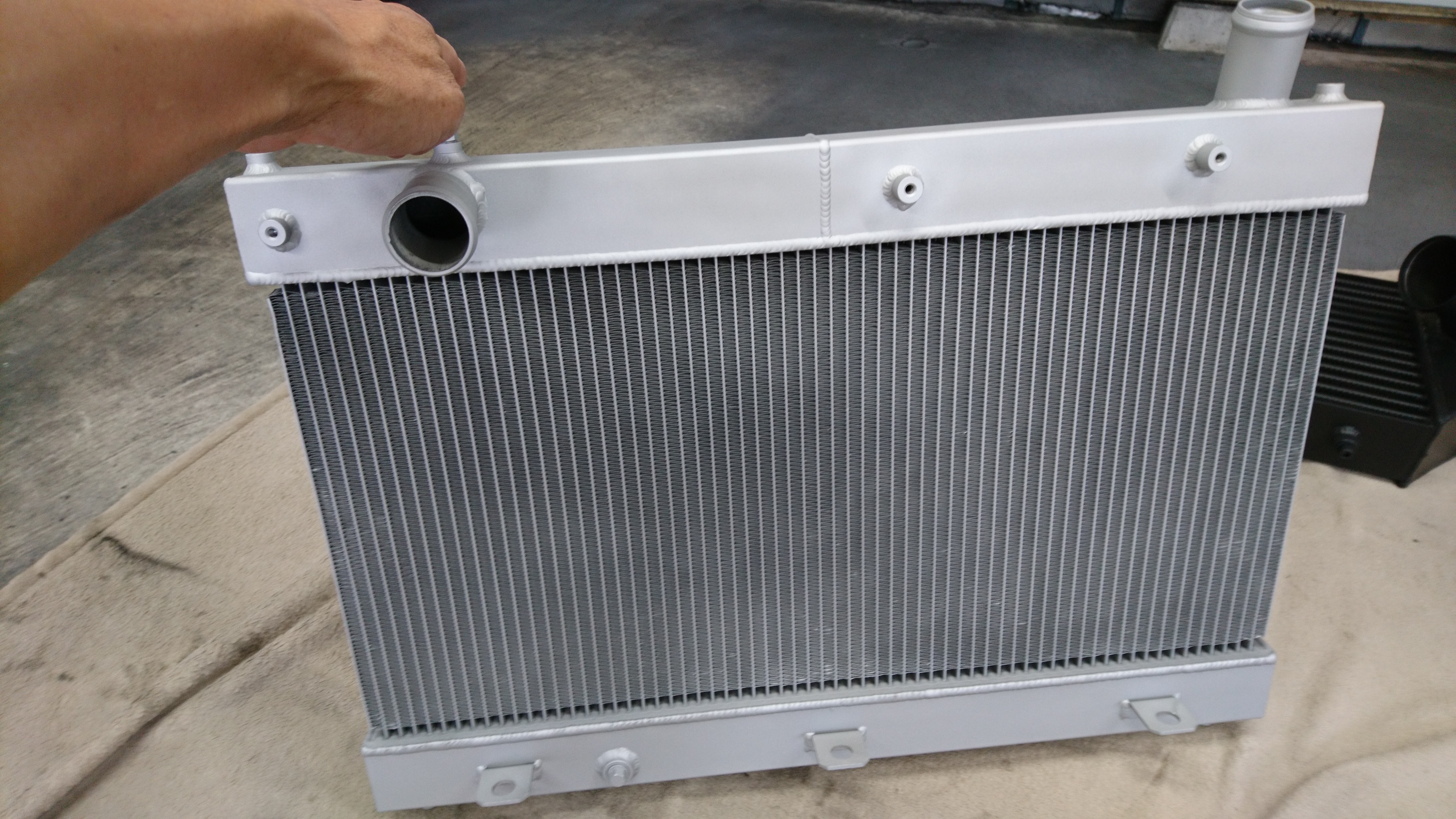 インタークーラー・ラジエター・エアコンコンデンサーにそれぞれガンコートを施工しました!  ガンコートはコーティングすると非常に硬くなるのでフィンが潰れにくくなります。 放熱効果もありますので、冷却装置関係に適しています。