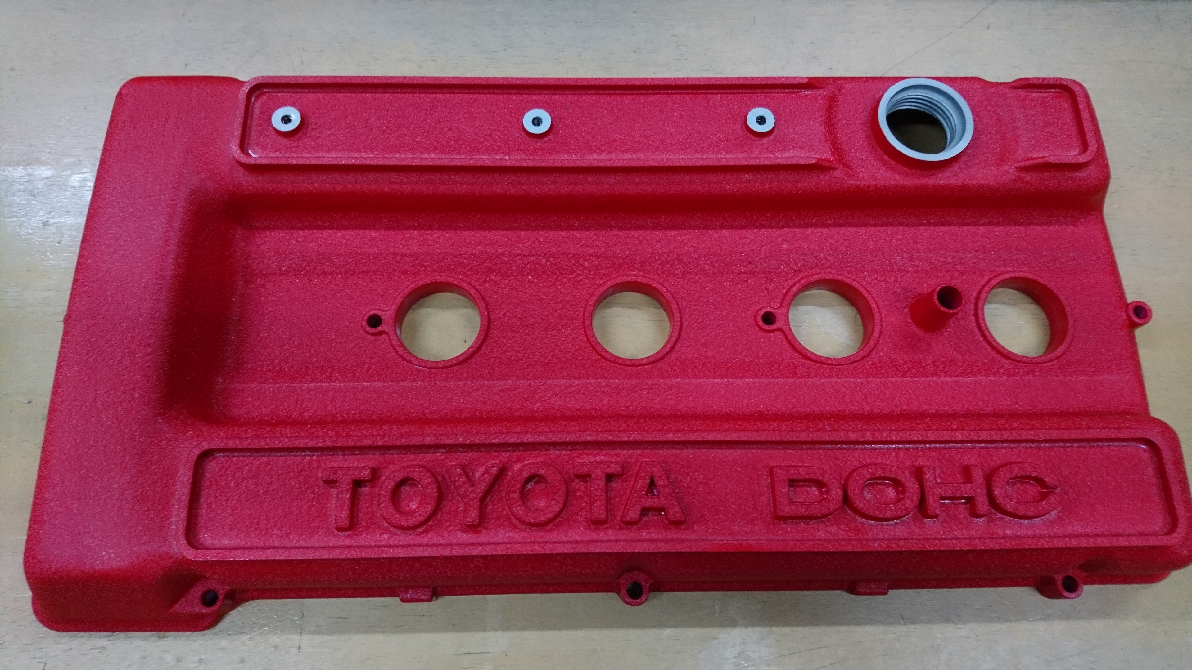 トヨタ 2TGエンジンのタペットカバーに結晶塗装の施工です。 純正と同色の赤にて塗装しました。純正よりも鮮やかな色に仕上がりお客様にも大変満足していただけました。